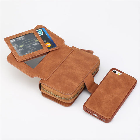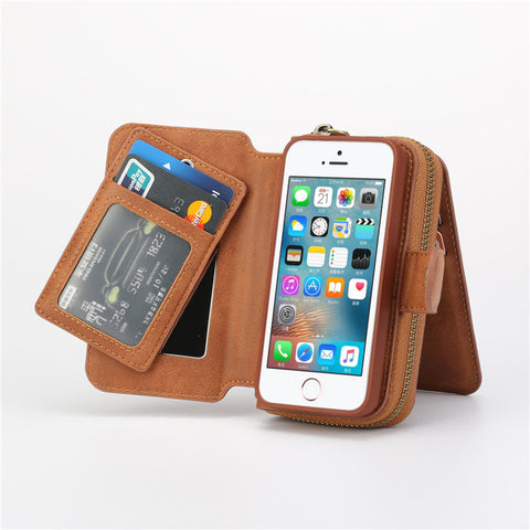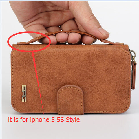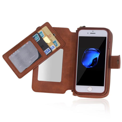 Fashion Multi function Wallet Leather Case For iPhone 7/Plus/ 6S/6S plus/5S/SE Zipper Purse Pouch Phone Cases Lady Women Style Handbag Cover