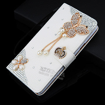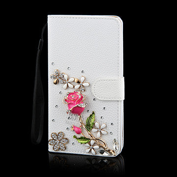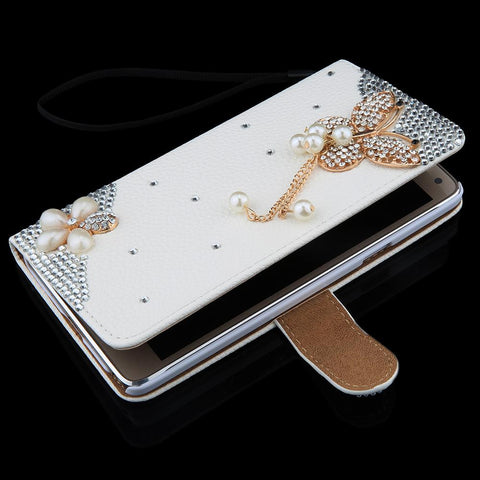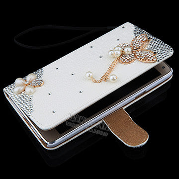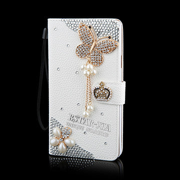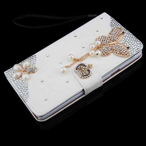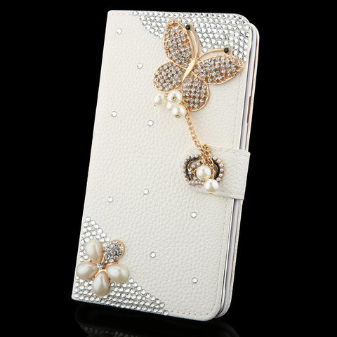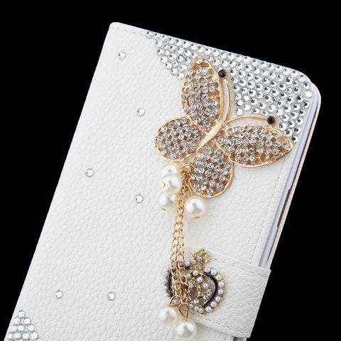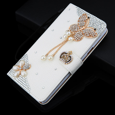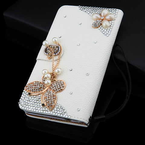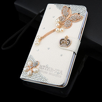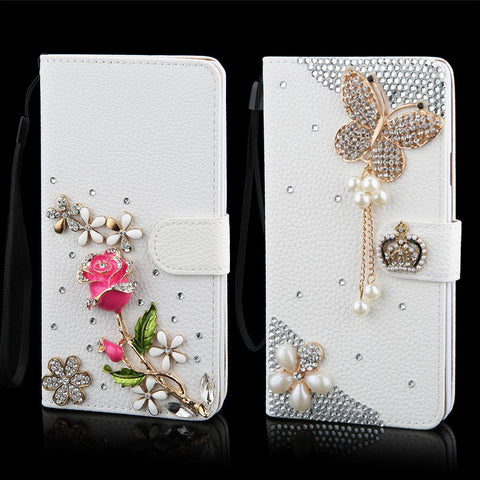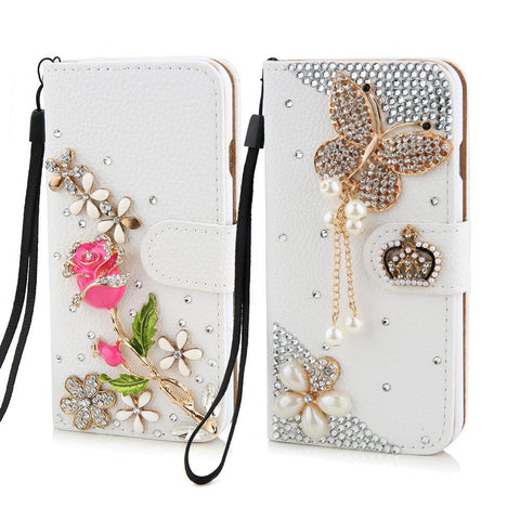 Style 5: White Luxury Handmade Bling Diamond PU Flip Leather Case Cover