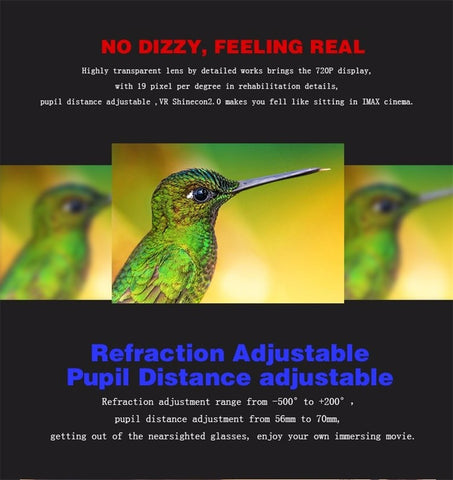4.VR shinecon 2.0 has uopdate the IPD adjustment and Focus Adjustment , Focus Adjust button can adjust the lens Individually .